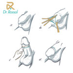 O esquema abaixo demonstra, de forma estilizada, as etapas da postectomia (circuncisão):