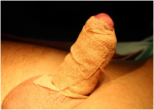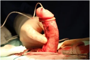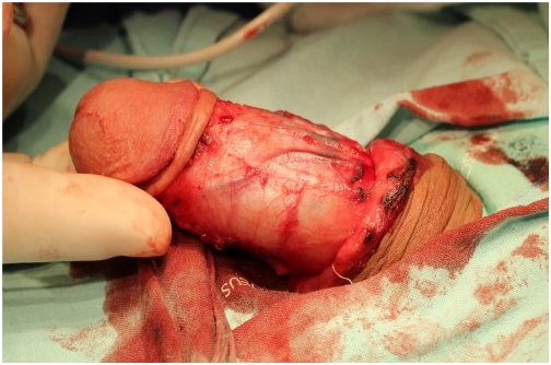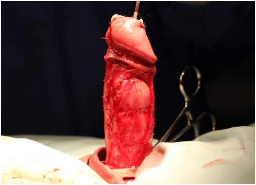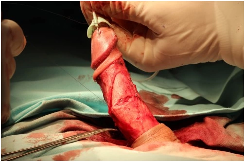 Os profissionais geralmente posicionam dois pequenos drenos de sucção superficialmente à fáscia de Buck e profundamente à fáscia Dartos. Em seguida, suturam a pele do pênis com pontos separados de fio absorvível. Em alguns pacientes, inserem um cateter de Foley de pequeno calibre, que costumam retirar já no primeiro dia pós-operatório. De acordo com a quantidade de edema e drenagem, liberam o paciente no final do primeiro dia ou no início do segundo dia após a cirurgia.